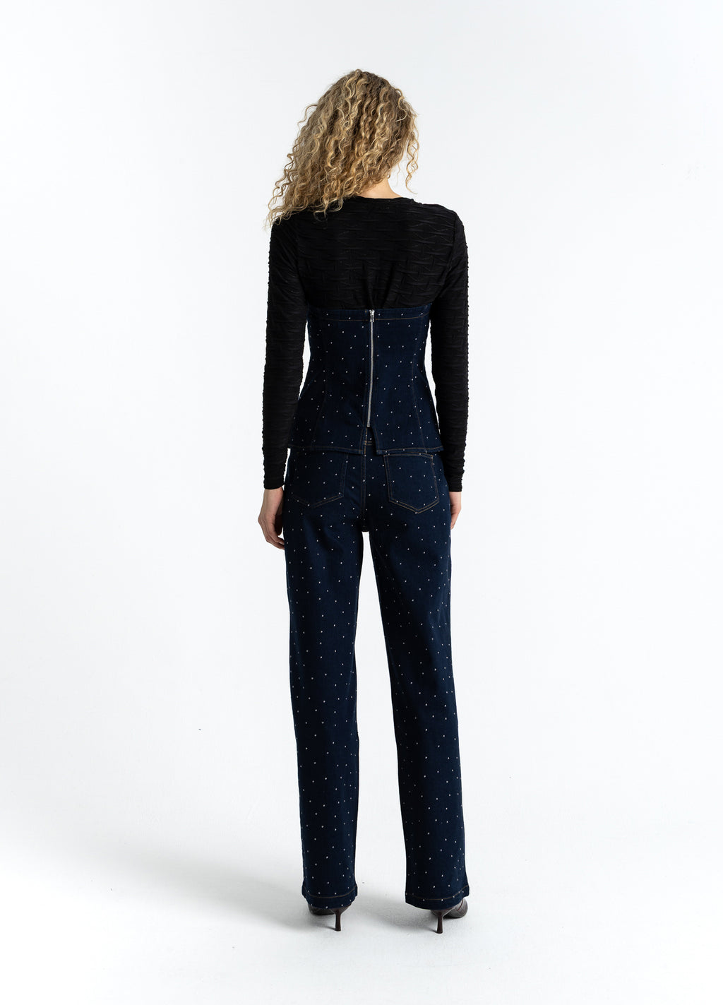Das Model ist 182 cm groß und trägt Größe S. Ihr Brustumfang beträgt 82 cm, Taille 61 cm und Hüften 93 cm.