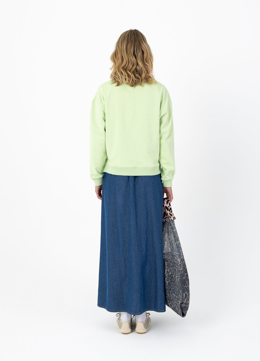 Das Modell ist 173 cm groß und trägt Größe S. Sie misst 84 cm um die Brust, 65 cm um die Taille und 96 cm um die Hüften.