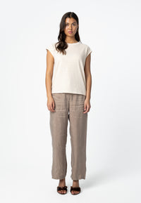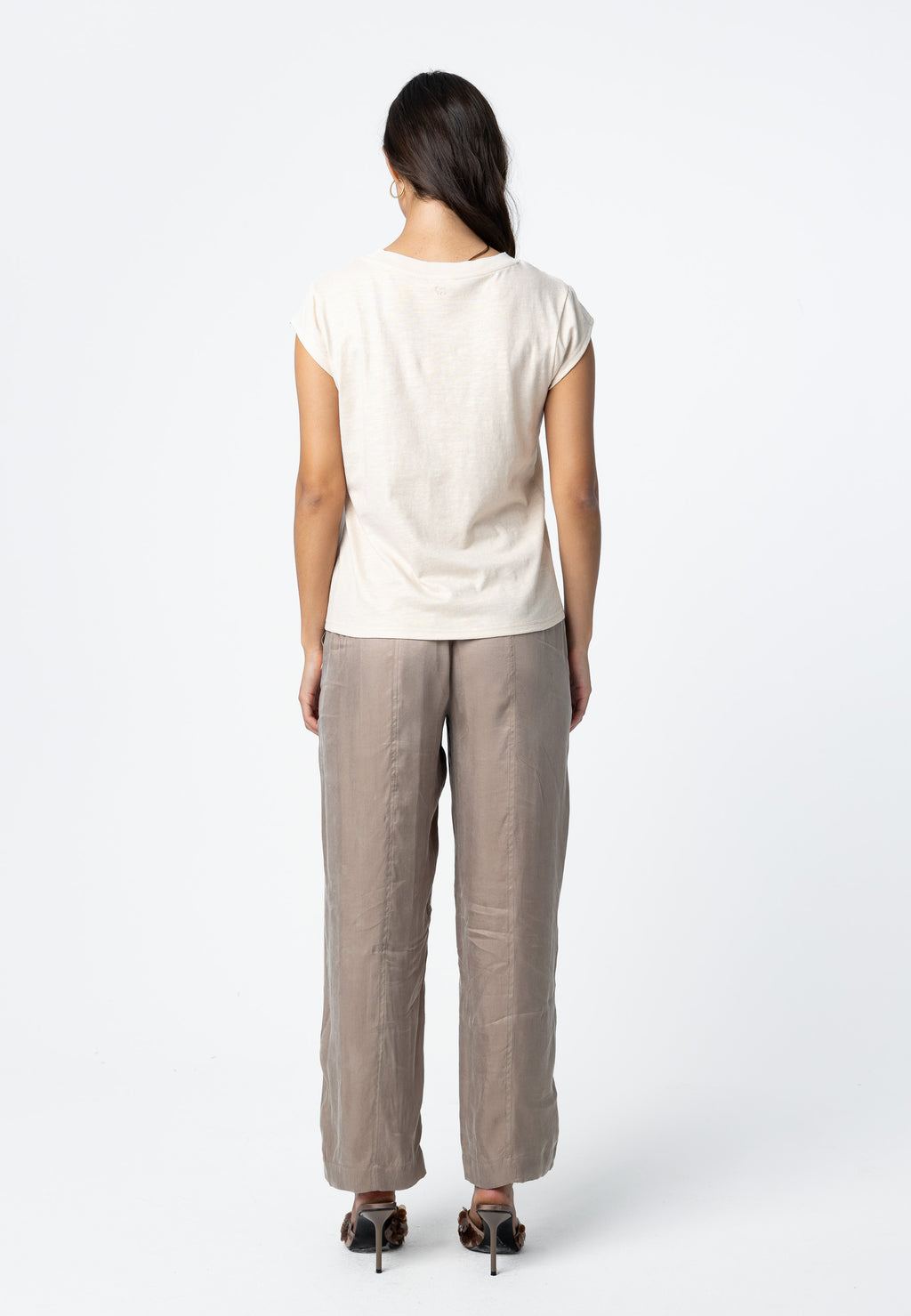 Das Modell ist 173 cm groß und trägt Größe S. Sie misst 84 cm um die Brust, 65 cm um die Taille und 96 cm um die Hüften.